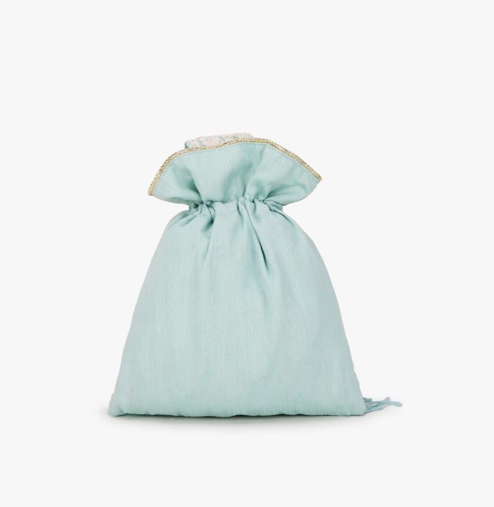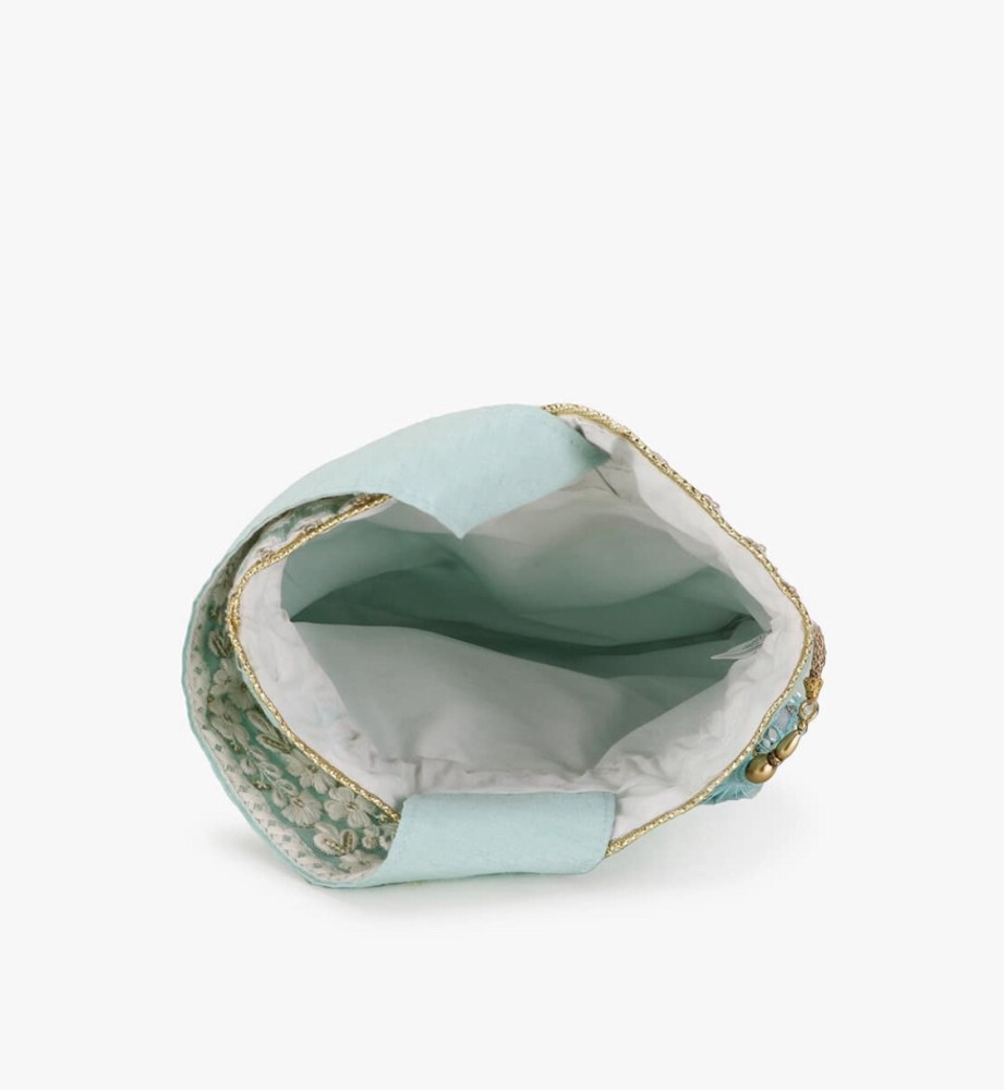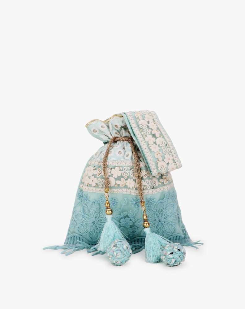 حقيبة يد مطرزة يدوياً باللونين الأزرق والأبيض